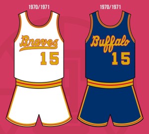 Le 1er octobre 1970, c’est à domicile que les Braves inaugurent leur histoire avec la National Basketball Association. 7129 spectateurs prennent place dans un Auditorium, qui ne fait malheureusement pas le plein, avec des billets achetés de 1$75 à 6$50. La saison commence de la plus belle des manières avec une victoire, 107 à 92, face aux Cavaliers, comme en pré-saison. Buffalo va rencontrer onze fois de plus la franchise de l’Ohio, tout comme celle de Portland, soit 24 matchs sur 82 face à une autre équipe débutante ! La NBA a organisé le calendrier pour augmenter les chances de victoires des petits nouveaux et ne pas les décourager. Sur les 22 victoires que vont obtenir les Braves en cette saison 1970-71, la moitié sera face aux Cavaliers et aux Trail Blazers. Le premier cinq majeur se compose du deuxième année en provenance des Lakers, Dick Garrett ainsi que de Herm Gilliam, Don May, John Hummer et Nate Bowman. May profite tout de suite de l’opportunité de voir son temps de jeu exploser. Il score 25 points, Garrett 20, dont le premier panier de la franchise, tandis que l’autre ancien joueur de Big Apple, Nate Bowman réalise un double-double avec 12 points et 10 rebonds. Le starting five va évoluer et se composer progressivement en ligne arrière de l’ancien Knick et Celtic aux magnifiques rouflaquettes et au bandeau Em Bryant et de Dick Garrett, à l’aile de Don May, et à l’intérieur de Kauffman et du rookie John Hummer. Après ce succès initial, neuf défaites vont suivre avant de battre une nouvelle fois Cleveland. Dans cette saison, évidemment difficile pour un nouvel arrivant, Buffalo va réussir quatre fois à remporter deux matchs de suite, une fois une série de trois succès et deux fois à faire chuter les champions en titre. Le premier triomphe devant les voisins new yorkais a lieu le 4 décembre devant un parterre d’étudiants des facs à proximité, fans des Knicks. Les Lakers de Los Angeles chutent aussi deux fois face aux valeureux débutants, la première fois le 15 décembre, 133 à 111 en prolongation, à Buffalo. Mauvais voyageurs, les Braves ne vont finir que 6 fois sur 40 victorieux à l’extérieur. Jusqu’en 1973, au moins un joueur représentait sa franchise au All-Star Game et le 12 janvier 1971, c’est Bob Kauffman qui a l’honneur de fouler le parquet de la San Diego Sports Arena. « Ajax » gagnera deux sélections de plus en 1972 et 1973. A la rubrique fait divers, après sa jolie performance du match inaugural, Nate Bowman ne fait plus aucune étincelle jusqu’au jour où il se présente à l’entrainement avec une arme à feu destinée à être utilisé contre l’entraineur Schayes. Cela sonnera le glas de la carrière NBA du pivot. Au soutien des deux belles surprises de la saison, Kauffman et May, Em Bryant, seul trentenaire de l’équipe, réalise sa meilleure saison professionnelle, avec 10 points et 4,8 passes décisives de moyenne. C’est aussi le cas pour Dick Garrett et John Hummer qui rentreront dans l’anonymat après leur passage à Buffalo. En l’absence de superstar, voire même de star tout court, les nouveaux Braves, des anciens faire-valoir qui ont de la chance de se voir offrir des minutes précieuses, réussissent à atteindre un bilan de 22 victoires et 60 défaites, honorable pour une nouvelle franchise. Malheureusement, le public n’est pas encore au rendez-vous avec moins de 5 000 spectateurs par match, la population de Buffalo préférant les Sabres.