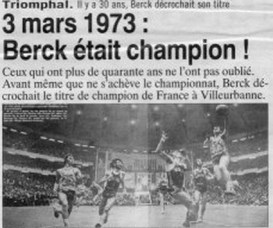⦁ Le titre de champion de France, gagné avec Berck sur le terrain de Villeurbanne en 1973, devant 12 000 spectateurs, reste son souvenir le plus marquant.
