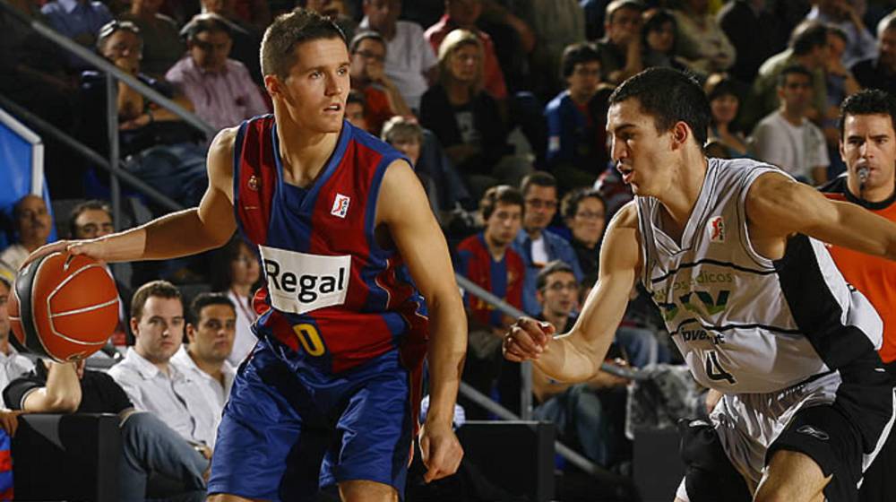 Lors de la saison 2006/2007, Jaka Lakovič débarque donc en Espagne, au Winterthur FC Barcelone pour être exact. A 27 ans, dans une équipe où figure également la légende locale, Juan Carlos Navarro (lui aussi plus de 20 saisons de fidélité), Lakovič retrouve quelques têtes connues lors de sa première saison. Les Italiens Gianluca Basile (meneur) et Denis Marconato (pivot), l’ailier-fort grec Michalis Kakiouzis et le jeune meneur croate Roko Ukić (21 ans). Le tout coaché par l’ombrageux Monténégrin Duško Ivanović, dont les méthodes de travail n’ont rien à envier à l’US Army, version « Marines ». Barcelone glane cette saison-là une Coupe du Roi face à son ennemi juré, le Real Madrid (69-53) avec notamment 16 points et 5 passes pour l’ami Lakovič. En saison régulière, Barcelone termine à la quatrième place mais affronte de nouveau le Real en finale des playoffs. Résultat, une défaite trois manches à une pour les hommes de Duško Ivanović. En Euroleague, le Winterthur Barcelone s’en sort plutôt pas mal lors des deux phases de poules (deuxième sur huit équipes puis deuxième sur quatre derrière le « Pana ») et pense hériter d’un tirage favorable en quarts de finale. Hélas, face à l’Unicaja Malaga, formation ultra-dangereuse, les Catalans s’inclinent 2-1. Une première saison correcte mais sans plus pour le club mais prolifique pour le meneur Slovène. Celui-ci termine en effet second aux points sur toute la saison derrière son coéquipier Navarro (10,7 points de moyenne pour Lakovič face aux 17,1 de Navarro) mais premier en passes (3,4 vs 3,2). La saison suivante (2007/2008), Barcelone change de nom et devient « AXA FC Barcelone » mais cette marque d’assurance n’est pas une garantie de réussite pour autant.