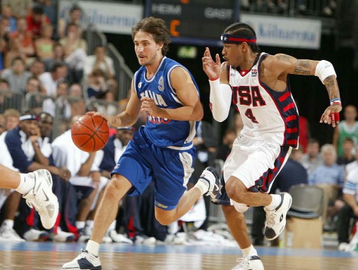Face à Allen Iverson en préparation des JO 2004 Crédit photo: Basketouniverso.it