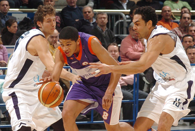 Batum entre deux défenseurs avec le MSB (c) basket actu com Batum entre deux défenseurs avec le MSB (c) basketactu.com