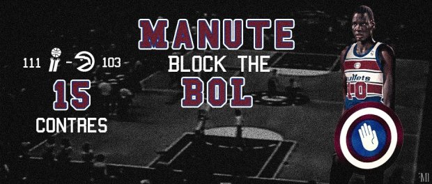 Avec ses 2m31, il ne passait pas inaperçu sur les parquets NBA. Drafté en 1985 en 31ème position par les Washington Bullets, le soudanais Manute Bol a réalisé un match grandiose pour sa saison rookie. Face aux Atlanta Hawks de Dominique Wilkins, Kevin Willis et Doc Rivers, le pivot titulaire des Bullets de 23 ans le 25 janvier 1986 a contré les tirs de ses adversaires à 15 reprises en 43 minutes de jeu passés sur le parquet. Il signait ainsi la deuxième plus grosse performance aux contres après les 17 contres d’Elmore Smith avec les Lakers le 28 octobre 1973. Il « Block the Bol » dans la peinture tout simplement.