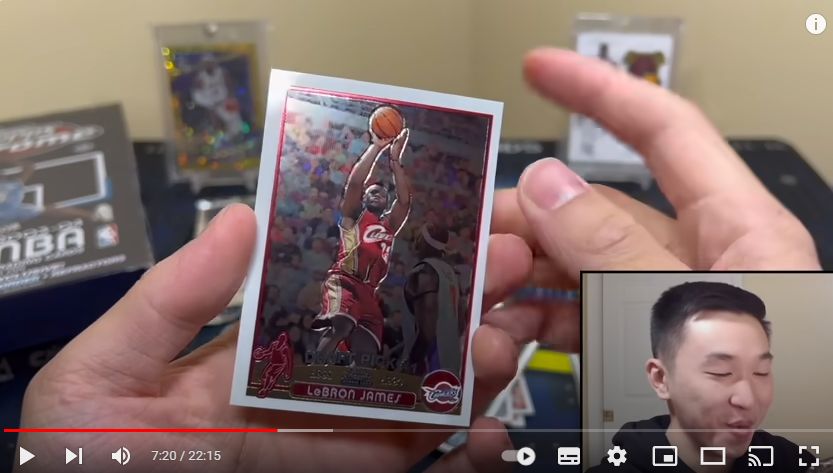On peut le voir très distinctement dans cette vidéo récente d’un Youtubeur s’étant lancé le défi de sortir une LeBron d’une box scellée de Topps Chrome 2003-04. Je vous laisse découvrir son tirage en vidéo, c’est toujours passionnant de voir quelqu’un ouvrir de nos jours une boite si rare et chère (environ $15000).