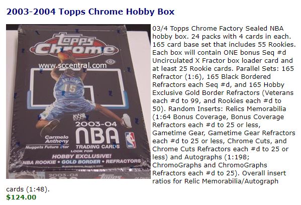 Tiens et si je vous faisais souffrir ? Combien vous aurait coûté une hobby box de Topps Chrome 2003-04 à Noël 2003 ?