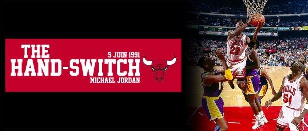 Les Américains ont l’art de trouver une formule, un mot, caractérisant un moment. Une action. Celle-ci est connue sous le nom de « The hand-switch ». Une expression toute-bête (le changement de main) mais à compter de ce match 2 des Finals 1991, elle deviendra pour toujours associée à Michael Jordan.