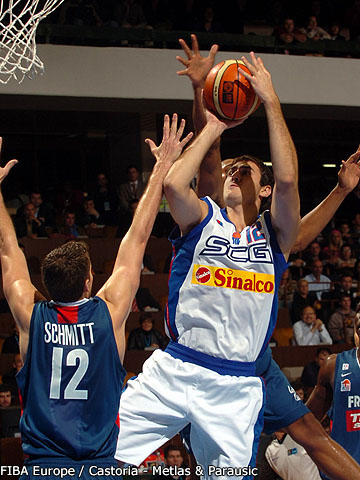 Les Bleus en défense lors du barrage France – Serbie – Euro 2005 (c) Fibaeurope – Castoria-Metlas & Parausic Les Bleus en défense lors du barrage France - Serbie - Euro 2005 (c) Fibaeurope - Castoria-Metlas &; Parausic
