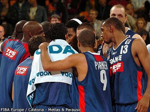 Les Bleus unis lors du barrage France – Serbie – Euro 2005 (c) Fibaeurope – Castoria-Metlas & Parausic Les Bleus unis lors du barrage France - Serbie - Euro 2005 (c) Fibaeurope - Castoria-Metlas & Parausic