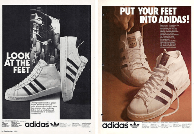 Alors aux Milwaukee Bucks, Kareem Adbul Jabbar troque sa Pro-Keds pour signer avec adidas et apporte à la chaussure sa légitimité et sa popularité naissante auprès des basketteurs du monde entier. Jerry West et Pete Maravich la portent également. A cette époque-là, Phil Knight, futur créateur de Nike, distribue des modèles Tigers (ASICS), avant de lancer la Blazer, sa première chaussure de basket. Puma tente de rivaliser avec la Suède et la Clyde, en vain. Pourtant, suite à un litige avec des distributeurs, la Superstar tarde à apparaître dans les magasins américains.