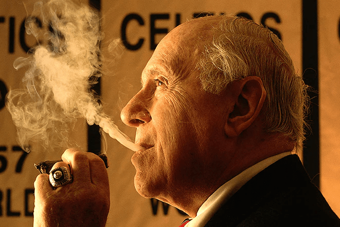 A l’image de ses entraînements d’une rudesse rarement vue, il était frappé par la même soif de vaincre que ses joueurs, mais sur le banc. Pour ce qui est du trashtalking, il était un précurseur en la matière et son imagination était sans limite. Dès qu’un match était plié d’avance, on ne le voyait plus debout au bord du terrain mais bel et bien assis jambe croisées, cigare aux lèvres enfumant le Boston Garden. Crapoter le cigare, c’était sa marque de fabrique. Fumer était à Red ce que mâcher un chewing-gum était à Michael Jordan : l’un n’allait pas sans l’autre. Rome ne s’est pas faite en un jour et comme tout empire, il a fallu gagner le respect puis devenir craint de leurs adversaires. Avec un personnage comme Auerbach, Boston n’a pas eu de difficulté à marquer la NBA de son emprunte, et ce dès les débuts de l’hégémonie Celtic. Tom Heinsohn (octuple champion NBA avec les Boston Celtics et sextuple All Star) témoigne :