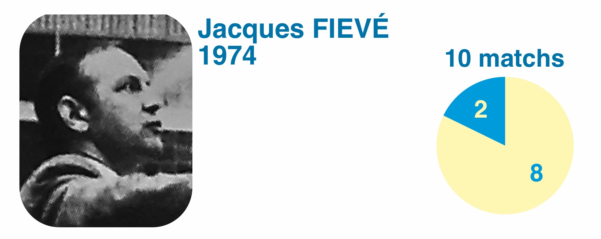 Un petit tour et puis s’en va. Convoqué pour un intérim sur le banc lors d’une « Coupe des Nations » que l’on dispute suite au forfait de l’Espagne. Jacques Fievé fait front lors de dix matchs seulement. Dix matchs pour huit défaites. Sans les frondeurs anti-Jaunay, sans les Berckois pourtant dominateurs en championnat de France, cette série de matchs est surtout marquée par l’apparition en bleu d’une jeune pépite de 16 ans et demi, Hervé Dubuisson.