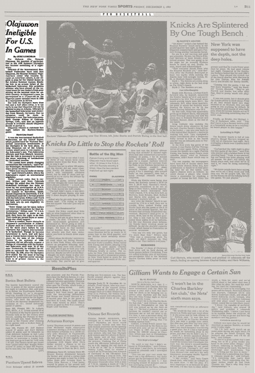 Oui…sauf qu’il y a un « mais ». Un petit détail va en effet convaincre la FIBA de l’inéligibilité d’Olajuwon, le coinçant pendant plusieurs années aux portes de la sélection. Cette opposition est dû à la participation du joueur à plusieurs rencontres officielles en 1980 avec la sélection U18 nigériane. Le règlement de la fédération stipule en effet qu’aucun joueur ne peut représenter deux pays différents, que ce soit avec l’équipe A ou avec les sélections jeunes. De plus, il est clairement stipulé qu’un joueur naturalisé doit attendre trois ans avant de jouer avec sa nouvelle sélection. Olajuwon ayant obtenu la citoyenneté américaine en septembre 1993 et les jeux d’Atlanta ayant lieux en août 1996, il ne serait de toute manière pas sectionnable pour l’évènement. Florian Wanninger, responsable presse de la FIBA à l’époque, déclarera par la suite aux journaux américains qu’on ne pouvait pas laisser des athlètes professionnels « changer de nationalité comme ils changent de pantalon ». Pas d’exception faite pour la star des Houston Rockets dont ces quelques matchs joués à dix-sept ans vont provisoirement le priver d’une potentielle participations aux Jeux d’Atlanta avec sa nouvelle nationalité.