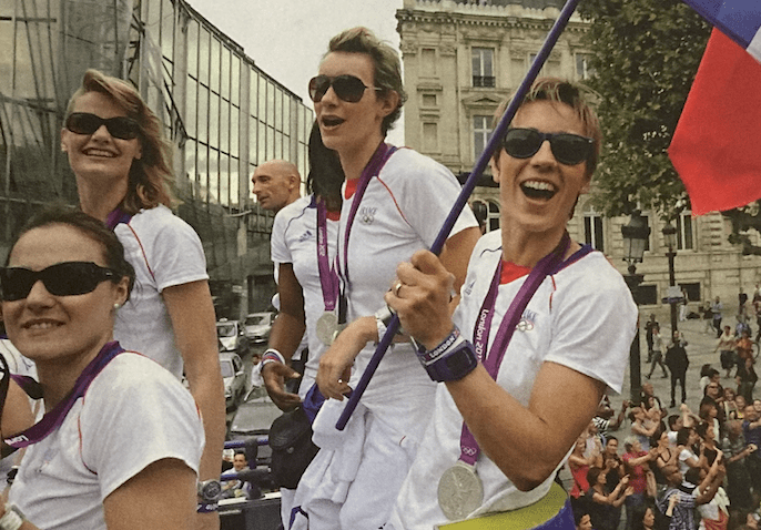 L’histoire des Braqueuses est donc celle d’une équipe débarquant à Londres avec des étoiles plein les yeux. Transcendées par la magie des Jeux où, dès la cérémonie d’ouverture, une émulation collective s’est fait ressentir au sein de cette grande famille que représentaient tous les athlètes tricolores. Pour Emmeline Ndongue, « ce moment où on rentre dans le stade et on chante tous ensemble la Marseillaise, vraiment ça n’a pas de prix. Je me revois presque flotter sur ce moment-là, car c’est un peu comme si on était qu’un pour représenter la France. » Cette effervescence s’est prolongée au village olympique, où chacun vibrait au rythme des exploits des autres, puisant dans cette énergie une source de motivation inestimable. Match après match, elles ont avancé avec insouciance, portées par une force collective et une double exigence : prendre du plaisir tout en donnant le meilleur d’elles-mêmes. Londres 2012 restera à jamais l’été où le basket féminin français a changé de dimension. Côté tribunes, elles nous auront fait passer par toutes les émotions. Et s’il fallait avoir le cœur bien accroché, une chose est sûre nous ne pouvons que les remercier.