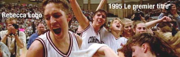 Après des saisons d’apprentissage sans relief aux bilans victoires / défaites négatifs, la direction sportive prend la décision en 1985 de confier l’équipe au jeune assistant coach de Virginia U, Luigi Geno Auriemma. Celui-ci ne met qu’une année à rétablir un bilan positif de 14 / 13 avant d’emmener celles qui ont remporté le titre de la Big East au tournoi final en 1989. Eliminées au premier tour, elles atteignent le second l’année suivante avant de se hisser au Final Four en 1991. Mais c’est la saison 1994/1995 qui marque véritablement le début de la légende UConn. Derrière ses deux leaders Rebecca Lobo et Nikesha Sales, les Huskies sont invaincues en saison régulière. En battant les Lady Volunteers de Tennessee U, 77/66, dans un Gampel Pavillon sold out et sous le regard des caméras d’ESPN, les Huskies se créent un féroce némésis. Ce match est la naissance d’une rivalité qui entrera dans l’histoire du sport universitaire. Car après avoir explosé Stanford en demi-finale de 31 points, UConn retrouve Tennessee en une finale âpre et tendue, (Lobo écope de 3 fautes en 94 secondes en première mi-temps) et n’emporte la décision qu’en fin de rencontre, 70/64. Après une saison à 35 victoires pour aucune défaite, les Huskies défilent devant 100 000 fans à Hartford et se voient offrir le trophée d’équipe de l’année aux prix ESPN ESPY. Elles font entrer le basket féminin universitaire dans une nouvelle ère.