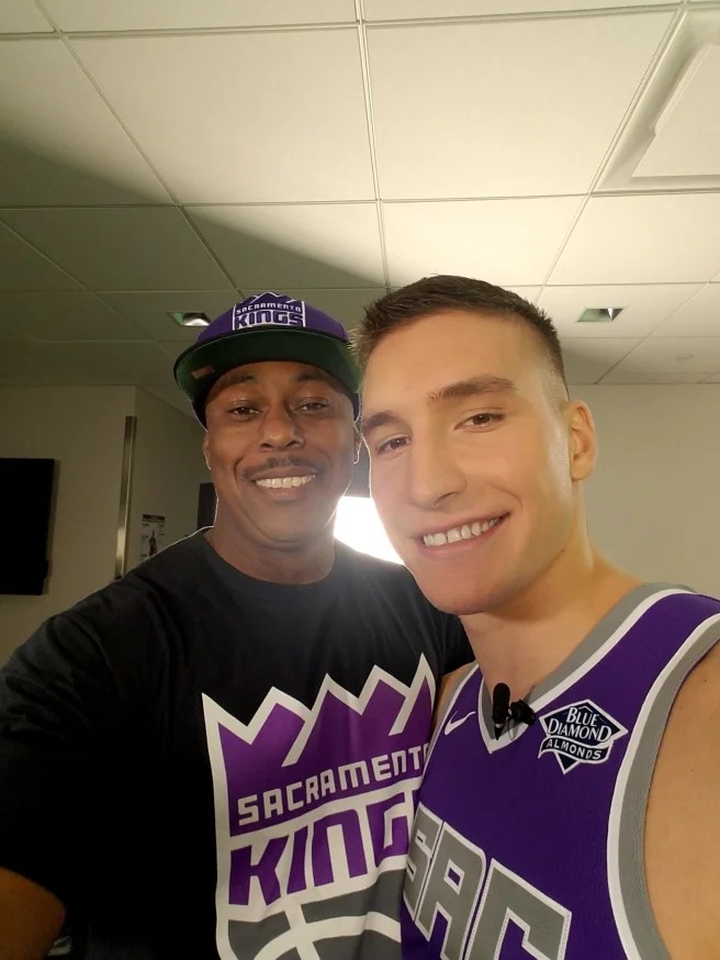 La saison 1989-1990 offre la possibilité à ce pur attaquant d’intégrer une formation qui a terminé sa précédente saison à une piètre dixième place en Conférence ouest avec l’exacte inverse de victoires-défaites que les premiers de la saison régulière, les Lakers (55 victoires et 27 défaites pour Los Angeles contre 27 victoires et 55 défaites pour les Kings). Dès lors, l’arrivée d’un jeune prospect dans une équipe qui se cherche est, au choix, soit une source d’opportunités ou un frein à son développement dans une écurie qui comprend comme principale tête d’affiche Danny Ainge, double champion NBA (1984 et 1986) avec les Celtics. Mais aussi Randy Allen, futur joueur de Cholet lors de la saison 1992-1993 avec comme coéquipier, le « Roi » Antoine Rigaudeau ainsi que Vinny Del Negro qui fera carrière principalement en Italie et le meneur Kenny Smith, futur double champion NBA avec les Rockets, en 1994 et 1995. Citons enfin, pour les mélomanes, la présence de Michael Jackson, futur dirigeant de Nike et Harold Pressley (avec 2 S) qui fera un passage entre 1993 et 1994 à Pau-Orthez. Dans cet ensemble pop-rock mélodieux sans véritable star, notre rookie qui porte le numéro 4 tente de grignoter des minutes et fini la saison avec 36 rencontres disputées.