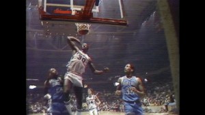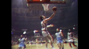Plus qu’incertain pour le match décisif, il revient avec le couteau entre les dents et un beau pansement au dessus de l’œil. L’après midi, il avait encore du mal à garder l’équilibre pour marcher. Première action du gamin ? Une envie d’en découdre avec Steve Mix après une bataille au rebond un peu houleuse. Peur de rien, il met les choses au clair. Ce soir, je vais tout donner, quitte à envoyer quelques patates pour me faire respecter ! La rencontre est disputée, les 76ers vont prendre une avance de dix points jusqu’au troisième QT. Buffalo se remet à défendre férocement tout en recollant au score sur les exploits de McAdoo, inarrêtable sur ses tirs à mi-distance, ainsi que l’apport précieux de ses coéquipiers, le triplé gagnant Smith/McMillian/Shumate. Les Braves ont cette fois la main mise.