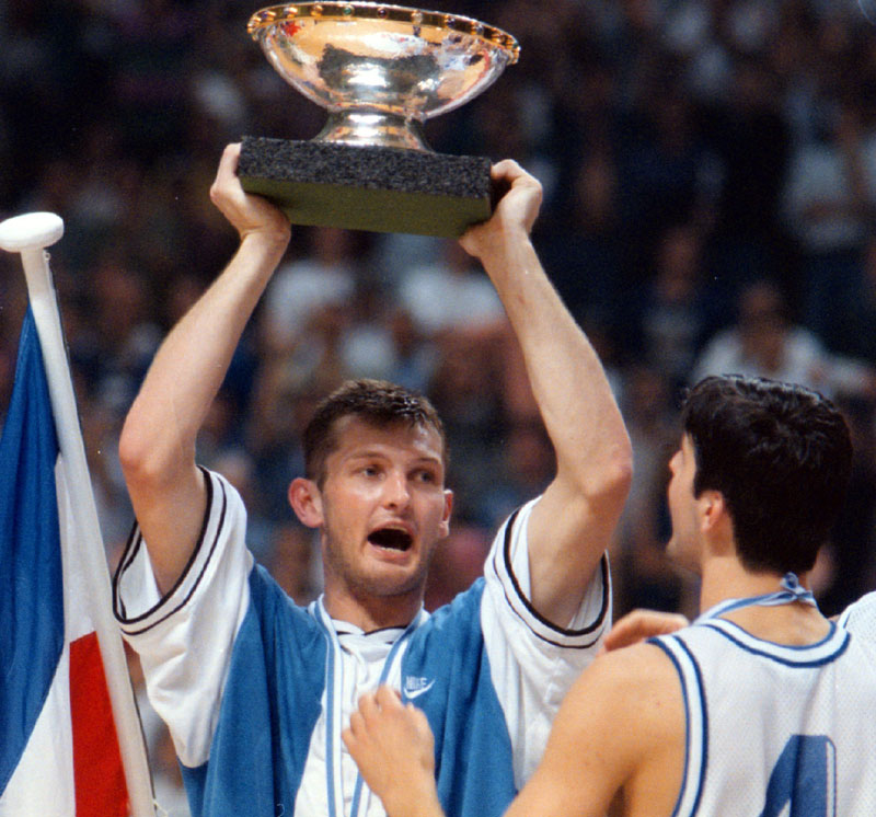 Pour Paspalj, qui se définit comme Serbe, les Eurobasket ont aussi des saveurs particulières. Ceux de 1989, à domicile à Zagreb face à la Grèce de Galis (98-77) et en Italie en 1991, face au pays organisateur avec, en prime, une place dans le cinq du tournoi en compagnie de Nando Gentile, Nikos Galis, Toni Kukoč et Antonio Martin Espina, ont été des moments intenses. Mais ces épopées trouvent leur apogée dans ses deux dernières compétitions majeures. Tout d’abord, l’Eurobasket de 1995, disputée en Grèce avec un premier tour digne d’un bon vieux traquenard, balayé haut la main par des Yougoslaves en confiance. Terminer premier dans un groupe composé de la Lituanie, la Grèce, l’Italie et l’Allemagne, championne d’Europe en titre est un acte majeur. Mais en plus, invaincus, c’est encore mieux. Après avoir facilement battu la France puis la Grèce, les Yougoslaves se dirigent vers une finale d’anthologie face à la Lituanie du duo Sabonis- Marčiulionis. Avec un public soutenant les Lituaniens en raison de la guerre et malgré 32 points de Marčiulionis, Djordjević (41 points), Paspalj, le coach Ivković et son adjoint Obradović remportent la compétition 96-90. Cinq points pour Paspalj et quatre rebonds mais une quatrième médaille lors d’un championnat européen après le bronze initial de 1987 obtenu en… Grèce.