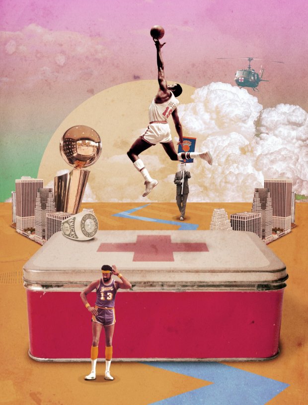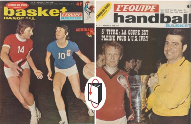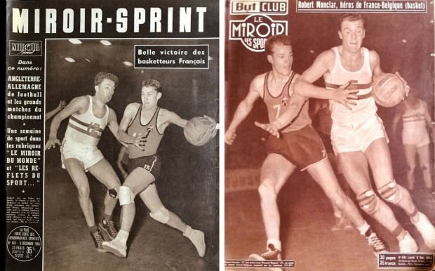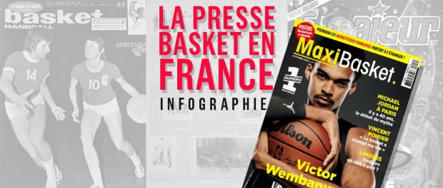 La libération sonne le glas pour Miroir des sports, (il renaît en 1951 et disparaît en 1968), et L’Auto, interdits de parution pour collaborationnisme. Épargné par l’infamie, l’un des piliers de L’Auto, Jacques Goddet, obtient l’autorisation de publier trois fois par semaine un nouveau journal dédié au sport. L’Équipe. Les communistes se mettent aussi sur le marché en soutenant en 1946 la création de l’hebdomadaire Miroir Sprint, (dernier numéro en 1992). L’après-guerre est une période assez faste pour le basket tricolore, les bons résultats de ses équipes nationales boostent la popularité de ce sport encore considéré comme « moderne ». Les pratiquants sont de plus en plus nombreux, les championnats de France masculin et féminin se structurent, c’est un premier âge d’or qui perdure dans les années 50. L’Équipe et Miroir Sprint suivent la tendance et accordent un peu de plus place dans leurs pages aux « géants » de la balle orange que leurs prédécesseurs d’avant-guerre. Les sixties sont moins florissantes. Le basket n’occupe plus guère les unes et la presse est souvent critique envers ce sport qui ne suit pas la marche du monde notamment en ce qui concerne les Bleus et les Bleues. Les filles disparaissent quasiment du paysage médiatique, les matchs ne sont pas télévisés, c’est à peine si le championnat de France suscite un regard distrait. On ignore tout de ce qui se passe à l’étranger et surtout aux États-Unis dont on ne connaît que les Harlem Globetrotters.