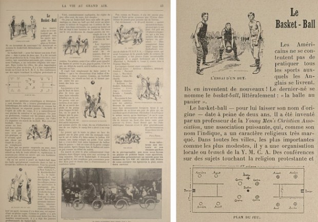 « Les Américains ne se content pas de pratiquer tous les sports auxquels ils se livrent. Ils en inventent de nouveau. Le dernier-né se nomme le basket-ball, littéralement : la balle au panier » – La vie au grand air, 15 mai 1898