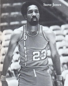 Malgré ses bonnes performances universitaires, Steve n’est pas drafté en NBA. La ligue professionnelle de basketball ne compte que neuf équipes à l’époque et les places sont chères ! C’est la création d’un championnat concurrent, celui de l’ABA, American Basketball Association, en 1967, qui va lancer la carrière professionnelle de Jones. Dix franchises sont créées et, recommandé auprès des propriétaires et de l’entraîneur Bruce Hall, Steve quitte son Oregon et descend le long de la côte ouest pour tenter sa chance au camp de sélection des Oaks d’Oakland. Une centaine de joueurs est présente et « Snapper », au milieu de ces candidats morts de faim, finit par gagner chèrement sa place dans l’effectif inaugural de l’équipe dont la mascotte est un petit gland dribbleur. Malheureusement cette représentation est prémonitoire et les Oaks finissent bon derniers de la ligue. A leur décharge, sur les 16 joueurs enfilant l’uniforme cette année-là, 12 sont des rookies ! Steve a l’honneur d’être le joueur le plus adroit de la saison derrière la ligne à 3 points avec 23 réussites sur 54 tentatives en 78 rencontres. Cette fameuse ligne est alors une spécificité de l’ABA, la NBA ne l’adoptant qu’en 1979. « Snapper » le sniper apprivoise donc ce bonus avec réussite mais aussi parcimonie ne tentant sa chance derrière l’arc moins d’une fois par rencontre ! Il quitte Oakland qui recrute la légende du coaching Alex Hannum, deux fois champion NBA, ainsi que Rick Barry. Ainsi renforcés, les Californiens passent de bons derniers à vainqueurs du championnat ABA en 1969. Les glands sont devenus chênes et Jones assiste impuissant à l’élévation de son ancienne équipe, étant balayé avec ses partenaires des Buccaners de la Nouvelle-Orleans par les Oaks en finale de la Western Division. Le sophomore Jones a cependant pris du grade chez les Bucs formant avec un homonyme au prénom de Jimmy une sacré paire d’arrières scoreurs. Sous les couleurs des Boucaniers, Steve devient All-Star en 1970 et le reste les deux saisons suivantes, d’abord en tant que joueur des Memphis Pros, la franchise des Buccaneers ayant déménagée dans la ville du King Elvis et ensuite représentant la franchise des Chaparrals de Dallas, les ancêtres des Spurs de San Antonio. « Snapper », qui s’est laissé pousser les cheveux et arbore désormais un bouc volumineux, ne reste qu’un peu plus d’une saison dans le maquis texan (chapparal) et devient un Cougar en rejoignant l’état de la Caroline en fin d’année 1972, échangé contre Bob Warren. Le coach des Carolina Cougars est un rookie qui deviendra célèbre, un certain Larry Brown, et le leader de l’équipe est Billy Cunnigham, champion NBA avec les Sixers de Philadelphia en 1967, qui vit alors une parenthèse ABA de deux saisons et est élu Most Valuable Player de la saison 1972-73. Les Cougars comptent aussi en joueur de complément un certain Ed Manning, le papa de Danny. Les temps de jeu sont répartis plus harmonieusement que dans ses anciennes équipes et les statistiques de Steve Jones diminuent parrallèllement. Comme la saison précédente, il est échangé, cette fois-ci contre Marv Roberts, direction les Rockets de Denver et l’entraineur Alex Hannum que Steve avait juste croisé à Oakland ! Le surnommé « Sergent York » termine sa carrière dans le Colorado. C’est aussi la dernière année sous l’appelation Rockets pour la franchise de Denver. À l’intersaison 1974, les fusées deviennent pépites, welcome to the Nuggets ! Nouveau nom et nouveau coach, Larry Brown. « Next Town Brown » ne conserve pas Steve Jones, celui qu’il avait échangé quelques mois plus tôt et « Snapper » s’envole vers les Spirits de Saint-Louis, évolution de la franchise des Cougars de Carolina qu’il avait quittée quelques mois plus tôt.