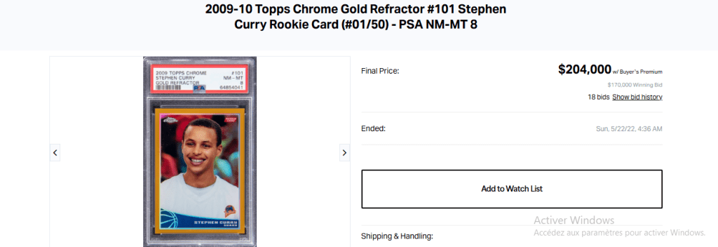 Jusqu’à son premier titre avec les Warriors en 2015, le marché des cartes de Curry est plutôt calme. Son premier sacre générant un engouement extrêmement important, tous les collectionneurs du monde entier se mettant à fouiller leurs boîtes à « junks » (cartes à faible valeur) à la recherche de trésors à l’effigie de Stephen. Le marché de seconde main se retrouve ainsi envahi par des milliers de cette rookie card délaissée et jugée sans valeur pendant des années, ainsi que d’autres cartes « monstrueuses » si rares et limitées issues des collections les plus prestigieuses.