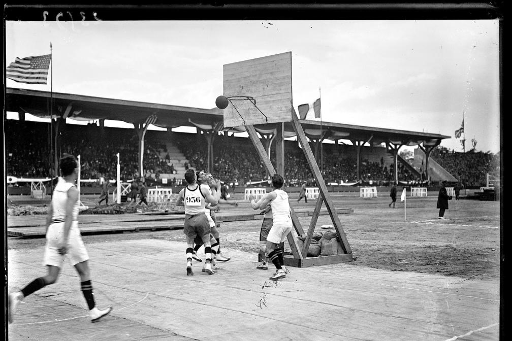 Quid de la place du basketball dans cet évènement ? Trois nations participent à ce gala de la balle orange au stade John Pershing à Paris (premier véritable stade fondé en quelques mois par l’armée américaine et les collectivités YMCA) : les Etats-Unis, la France et l’Italie. Près de 20 000 spectateurs sont au rendez-vous pour voir les États-Unis rouler sur la compétition emmenés par Marty Friedman, considéré comme l’un des pionniers du basketball professionnel (dont le duo avec Barney Sedran était surnommé les Heavenly Twins que l’on peut traduire par les jumeaux divins). Il passe la majeure partie de sa carrière (1910-1927) à voyager à travers le monde afin de populariser le basketball et a même organisé un tournoi en France réunissant près de 600 équipes, ce qui a inspiré les organisateurs de ces Jeux Interalliés à inclure le basket-ball parmi les épreuves. Il sera finalement intronisé au Hall of Fame en 1972. Sans grande surprise, les Américains battent sèchement la France (96-6) et l’Italie (55-17) et repartent avec la médaille d’or ; tandis que la France doit se contenter d’une troisième et dernière place après sa défaite contre les Italiens (11-15).