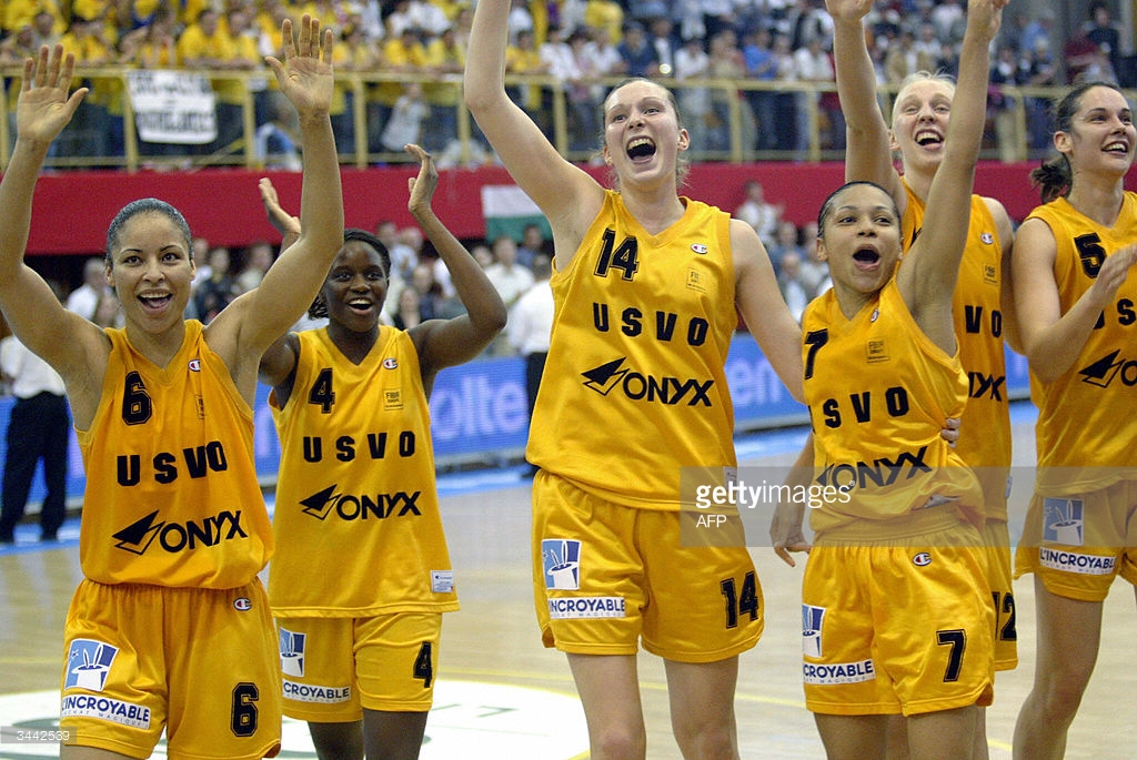 Allison Feaster-Strong à gauche bras levés lors de la victoire en Euroligue 2004 avec l’USVO (c) Getty Allison Feaster-Strong à gauche bras levés lors de la victoire en Euroligue 2004 avec l'USVO (c) Getty